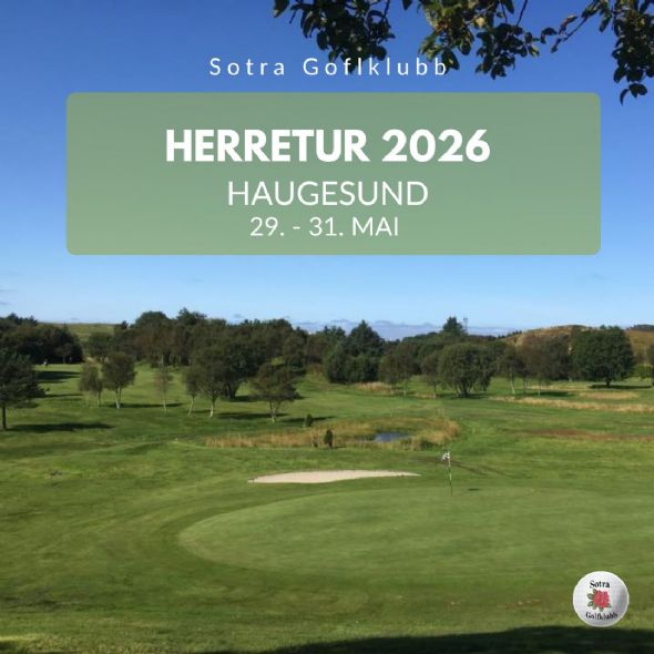 29.–31. mai 2026 med herregruppa i Sotra Golfklubb. Bli med på en sosial tur med gode golfopplevelser og flotte baner!
